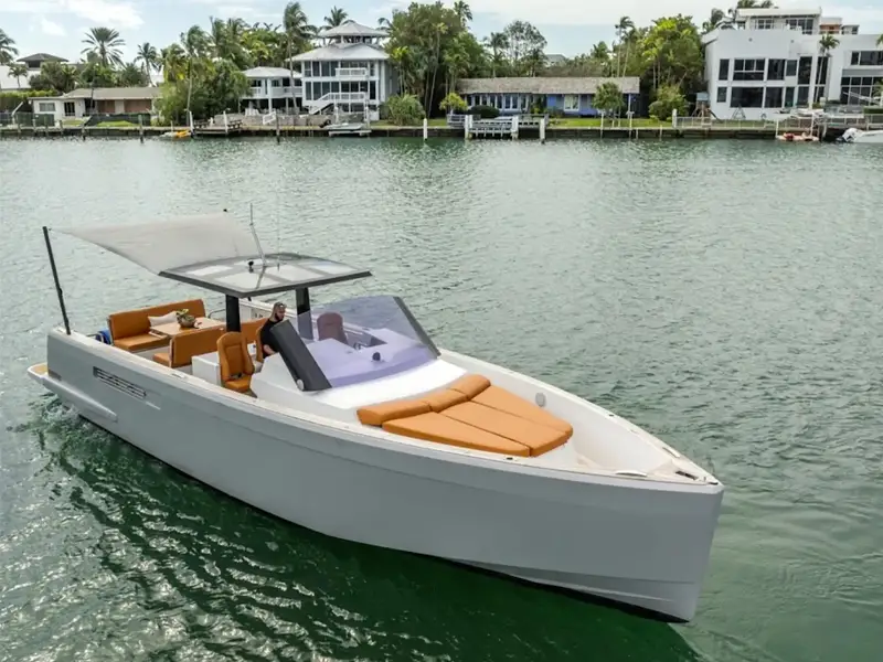 Vive una experiencia única con el mejor alquiler de botes en Miami Beach a bordo de este elegante Saxdor de 32 pies, con capacidad para hasta 13 personas…