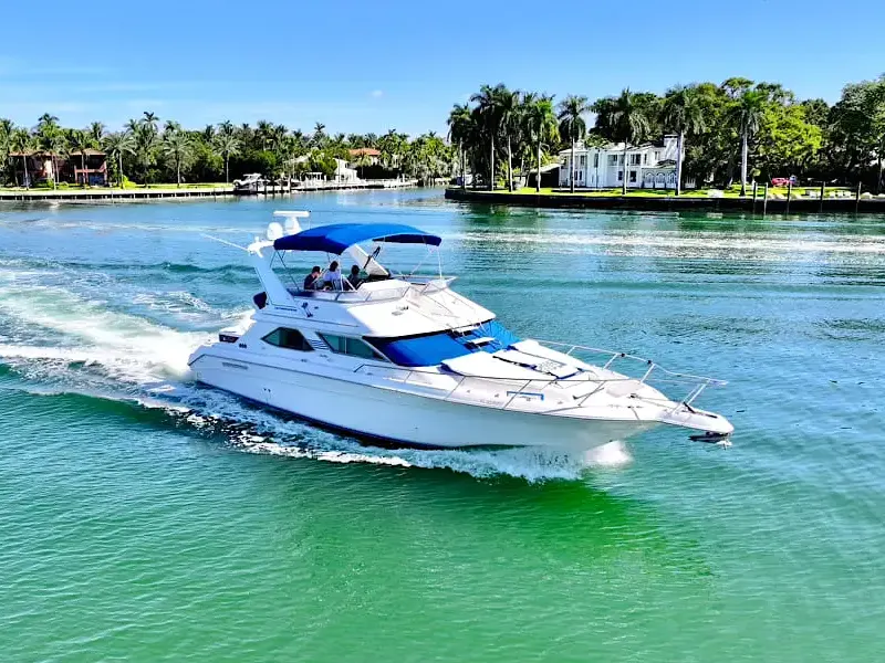 Viva el mejor Alquiler de Botes en Miami navegando por las aguas turquesas del sur de Florida 🌊 a bordo del elegante SeaRay de 44 pies desde la exclusi…