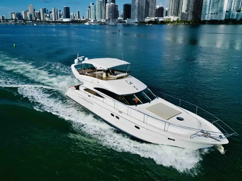Suba a bordo del exclusivo Prestige de 62 pies 🛥️, un bote de lujo disponible para Alquiler de Botes en Miami Beach 🚤✨ que combina sofisticación europ…