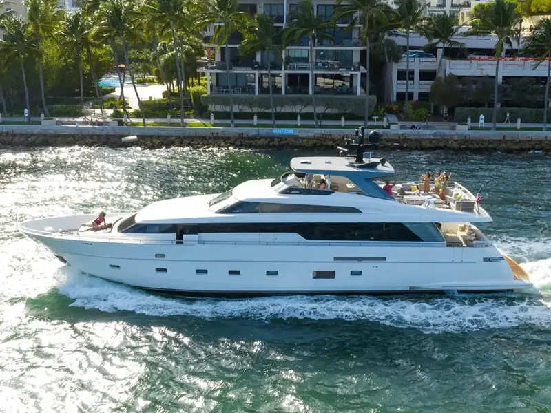 Experimente Miami Beach como nunca antes a bordo del lujoso Ferretti de 78 pies, perfecto para Alquiler de Botes en Miami y chárteres privados 🌴🌊…
