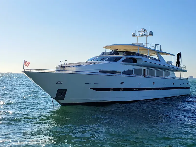 Suba a bordo del impresionante Horizon de 110 pies, un bote de alquiler en Miami Beach que combina ingeniería de lujo, amplias cubiertas y el icónico…